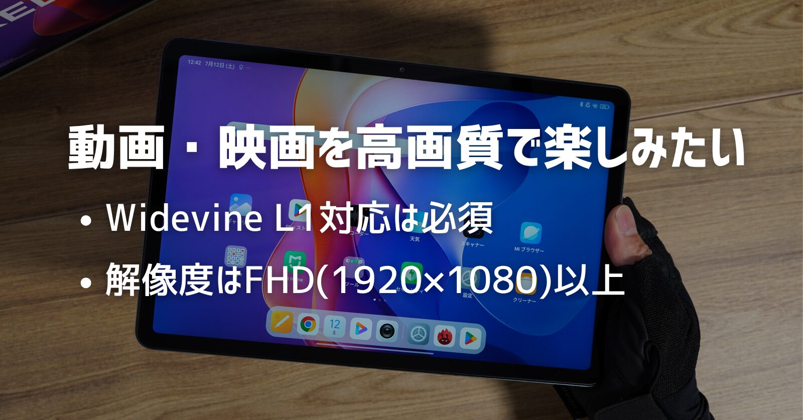 動画メインならWidevine L1とFHD以上の解像度だともっとも楽しめるんだね