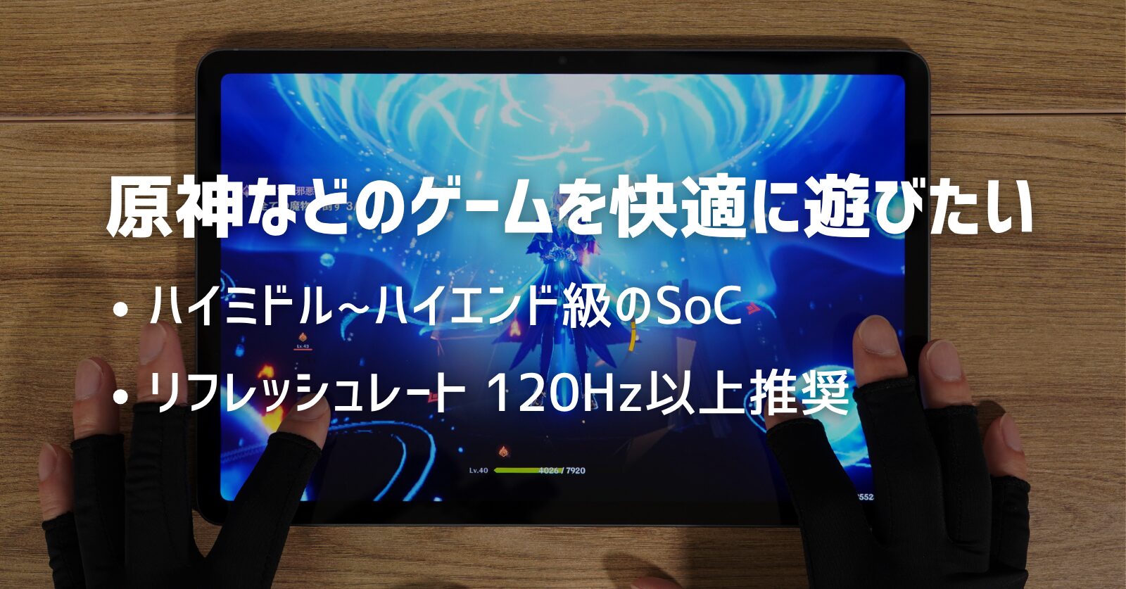 「タブレットでゲームもしたい」と考えているなら、画面の綺麗さよりも処理性能(SoC)にお金をかける必要があります。