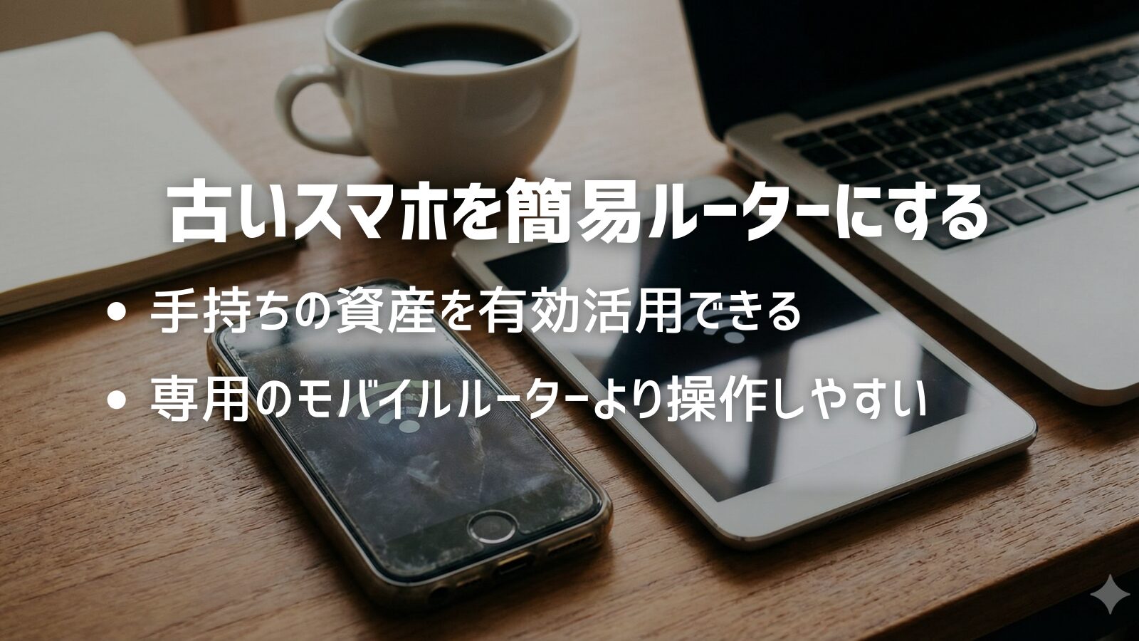 機種変更して使わなくなった「古いスマホ」を簡易的なモバイルルーターとして再利用する方法は、専用のモバイルルーターを購入するよりも、多くのメリットがあります。