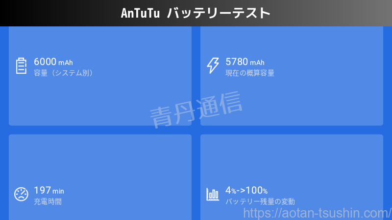 | 充電性能 | 197分(4%→100%) |