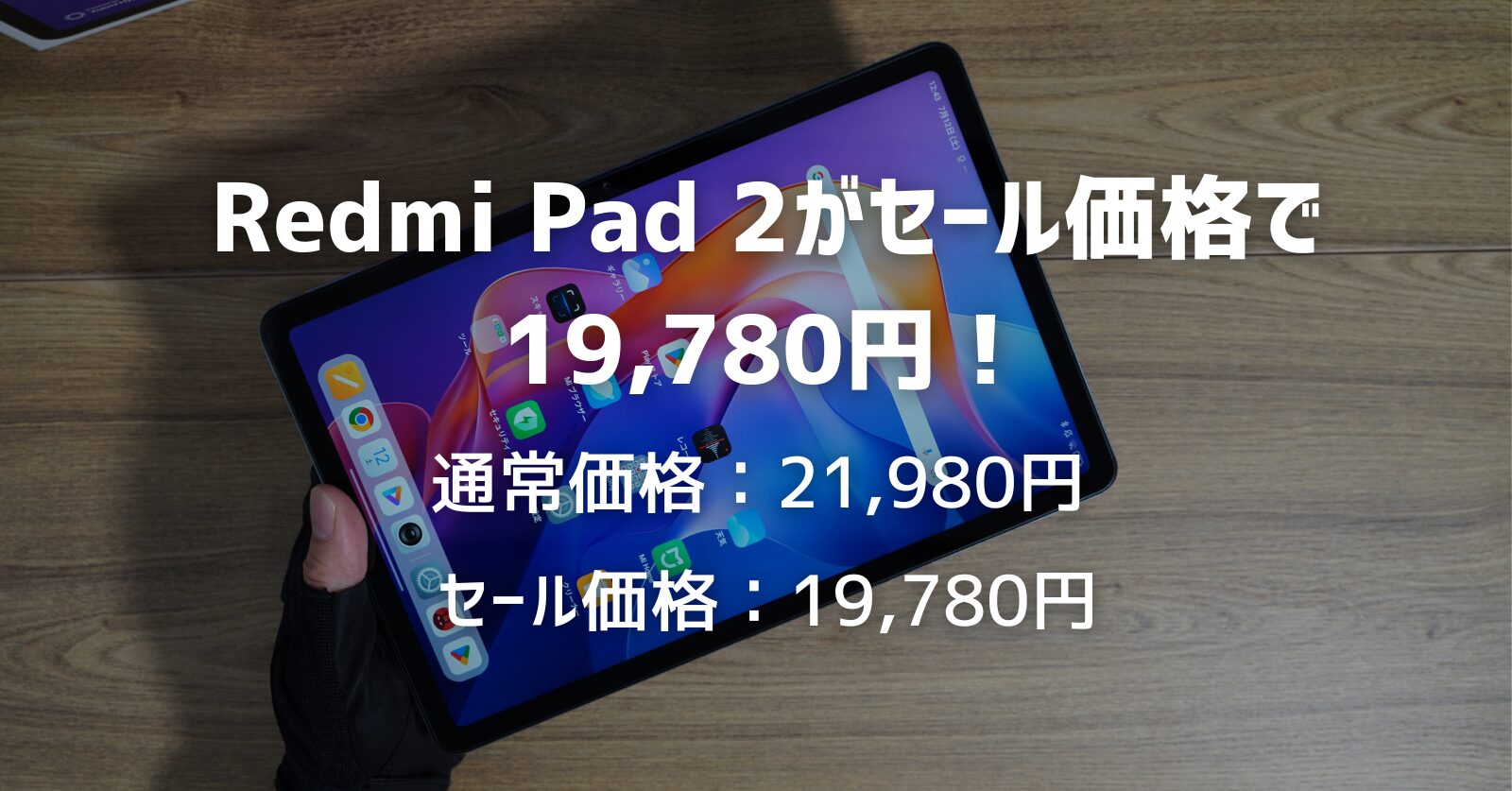 今回は、先日実機レビューをお届けした「Redmi Pad 2」がセール対象になっています。 発売から少し経ち、今回のセールでもおそらく2万円を切ってくるだろうと予想していましたが、期待通りの価格設定になっています。