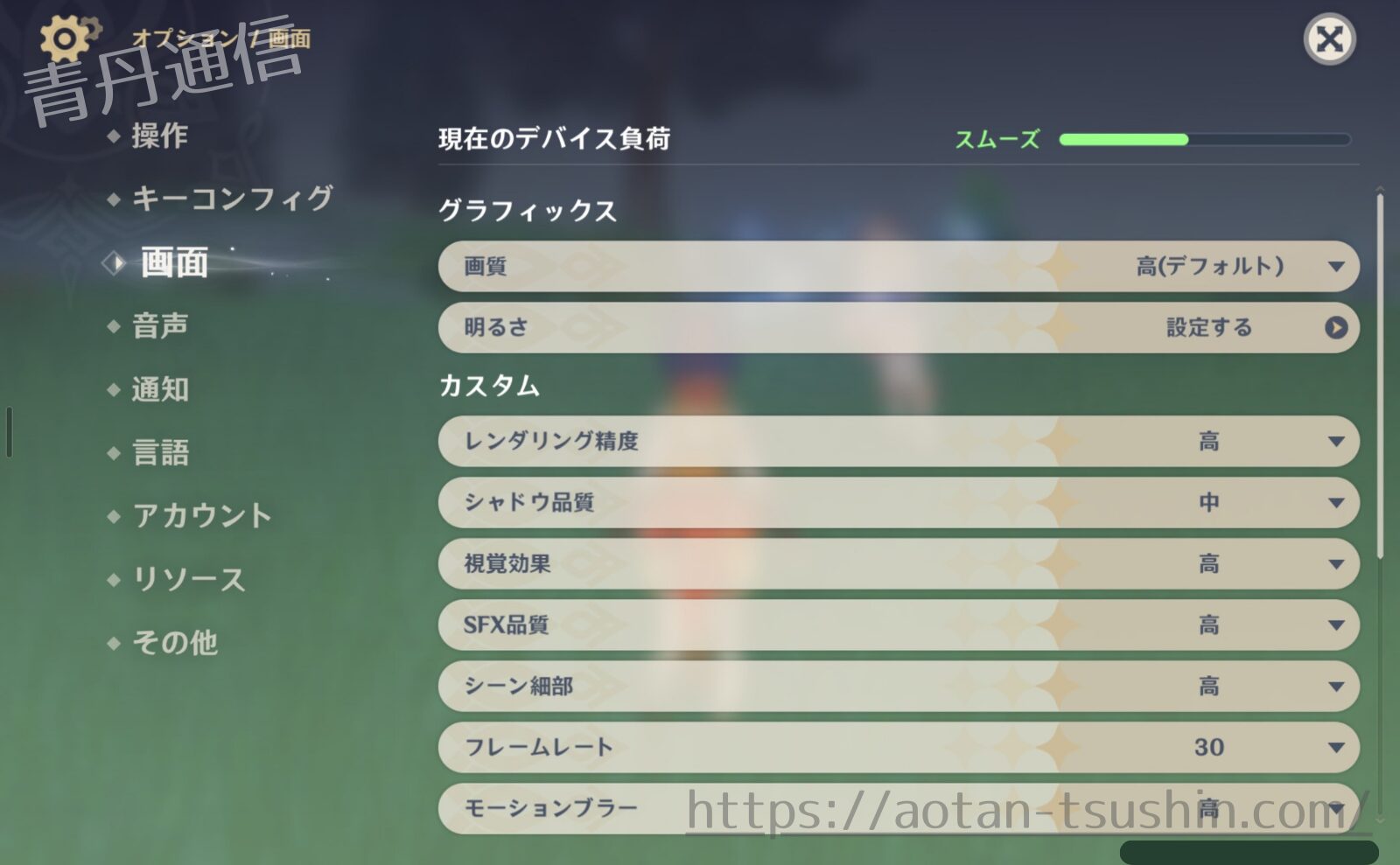 フレームレートを60にしても問題ありませんが多少発熱しているのを感じます。「最高」の設定でフレームレートを60にしても問題のない動きですが、発熱が「高」より気になります。「高」でも十分きれいな映像で楽しむことができるので、これくらいで楽しむのがいいのではないでしょうか。