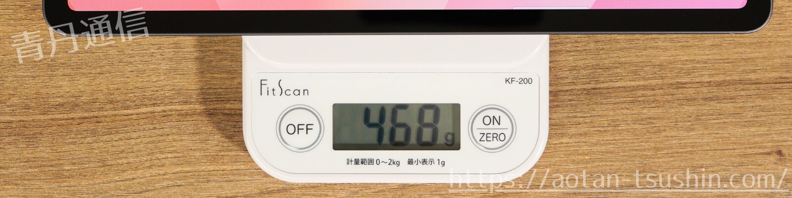 本体の重量の公称値は469gですが実測値468gとなっています。