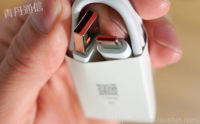 説明書、充電器、タイプA to Cのケーブルが入っていました。